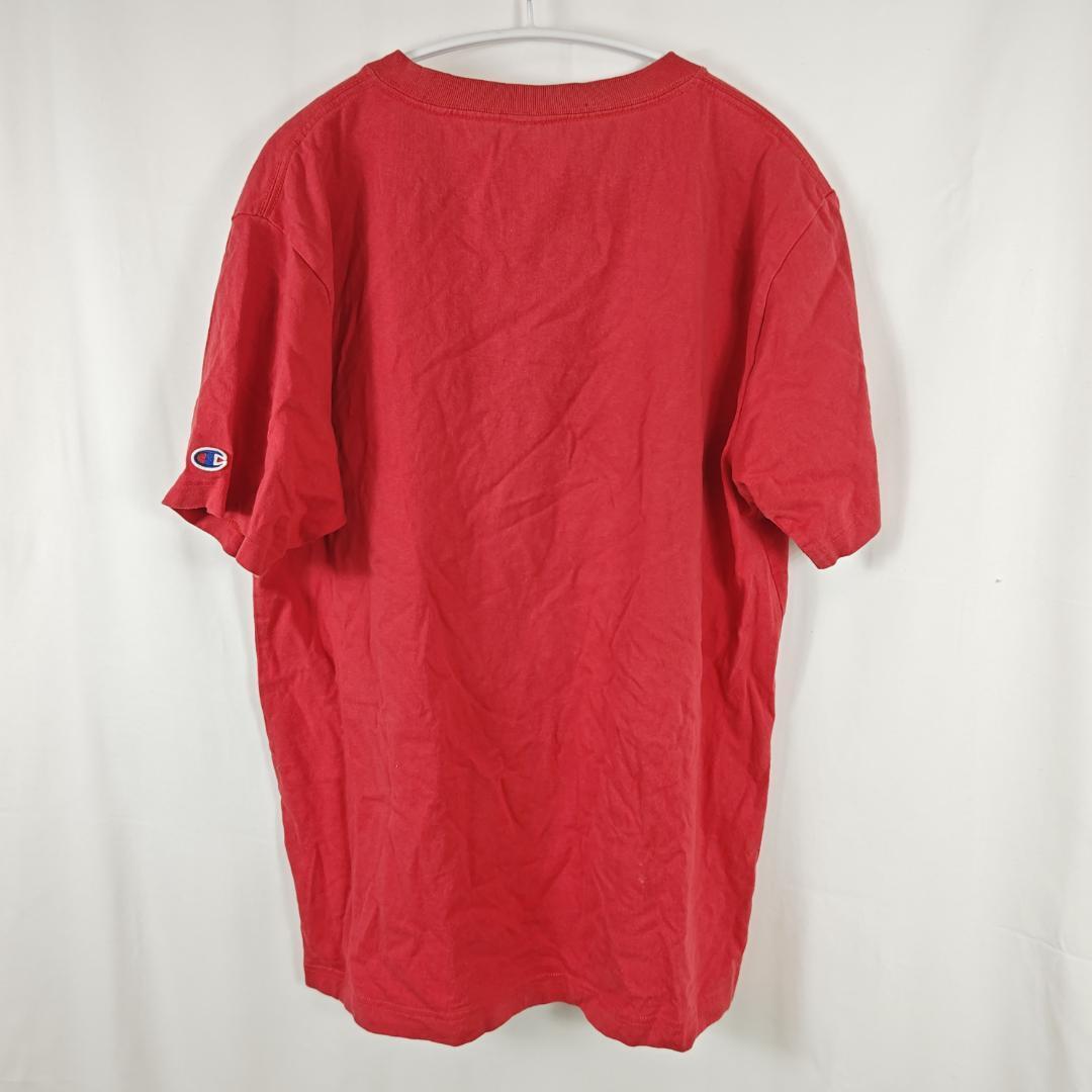レッドのChampion製Tシャツ、X-LARGEサイズ、ポケット付きデザイン